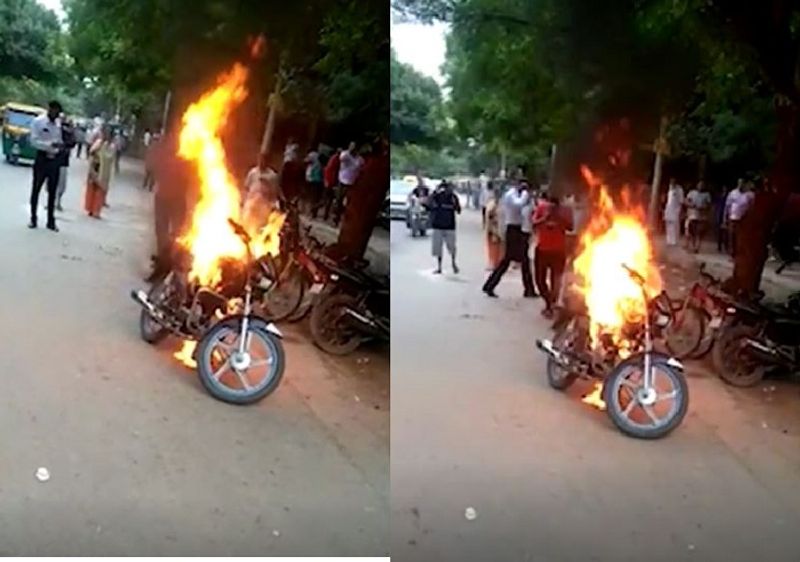 ದೆಹಲಿ(ಸೆ.06): ಹೆಲ್ಮೆಟ್ ಹಾಕದೆ, ಸಿಗ್ನಲ್ ನೋಡದೆ, ಒನ್ ವೇ, ಪಾರ್ಕಿಂಗ್ ಗಮನಿಸದೆ, ನಾವು ನಡೆದಿದ್ದೇ ದಾರಿ ಎಂದು ಸವಾರಿ ಮಾಡುತ್ತಿದ್ದ ವಾಹನ ಸವಾರರು ಇದೀಗ ಟ್ರಾಫಿಕ್ ನಿಯಮ ಪಾಲಿಸುವಂತಾಗಿದೆ. ಒಂದೆರಡು ಸಿಗ್ನಲ್ ಜಂಪ್ ಮಾಡಿದರೆ ಸಾಕು ದಂಡ 20,000 ರೂಪಾಯಿ ದಾಟಿರುತ್ತೆ. ಹೀಗೆ ನಿಯಮ ಉಲ್ಲಂಘಿಸಿದ ಬೈಕ್ ಸವಾರ ದಂಡ ಮೊತ್ತ ಕೇಳಿ ತನ್ನ ಬೈಕನ್ನೇ ಸುಟ್ಟ ಘಟನೆ ನಡೆದಿದೆ.