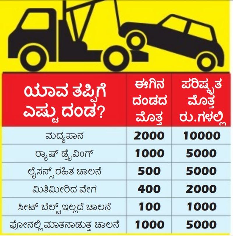 ಕರ್ನಾಟಕ ಮೋಟಾರ್ ವಾಹನ ಕಾಯ್ದೆ ತಿದ್ದುಪಡಿ: ಯಾವುದಕ್ಕೆ ಎಷ್ಟು ದಂಡ..?