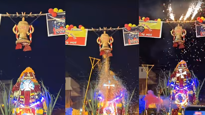 ಪ್ರತಿ ವರ್ಷ ಆರ್ಸಿಬಿ ಅಭಿಮಾನಿಗಳ ಬಳಕ ಸಿದ್ದೇಶ್ವರನಿಗೆ ಟ್ರೋಫಿ ಗೆಲ್ಲಲು ಪೂಜೆ ಸಲ್ಲಿಸಲಾಗುತ್ತದೆ. ಇದರಂತೆ ಈ ವರ್ಷವೂ ರಾಯಲ್ ಚಾಲೆಂಜರ್ಸ್ ಬೆಂಗಳೂರು ತಂಡ ಟ್ರೋಫಿ ಗೆಲ್ಲಲಿ ಎಂದು ಪ್ರಾರ್ಥಿಸಿದ್ದಾರೆ. ರಥೋತ್ಸವ ಆಗಮಿಸುತ್ತಿದ್ದಂತೆ ಟ್ರೋಫಿ ಮೂಲಕ ಪುಷ್ಪಾರ್ಷನೆ ಮಾಡಲಾಗಿದೆ. ಈ ವೇಳೆ ಈ ಸಲವೂ ಕಪ್ ನಮ್ದೆ ಎಂದು ಅಭಿಮಾನಿಗಳು ಘೋಷಣೆ ಕೂಗಿದ್ದಾರೆ.