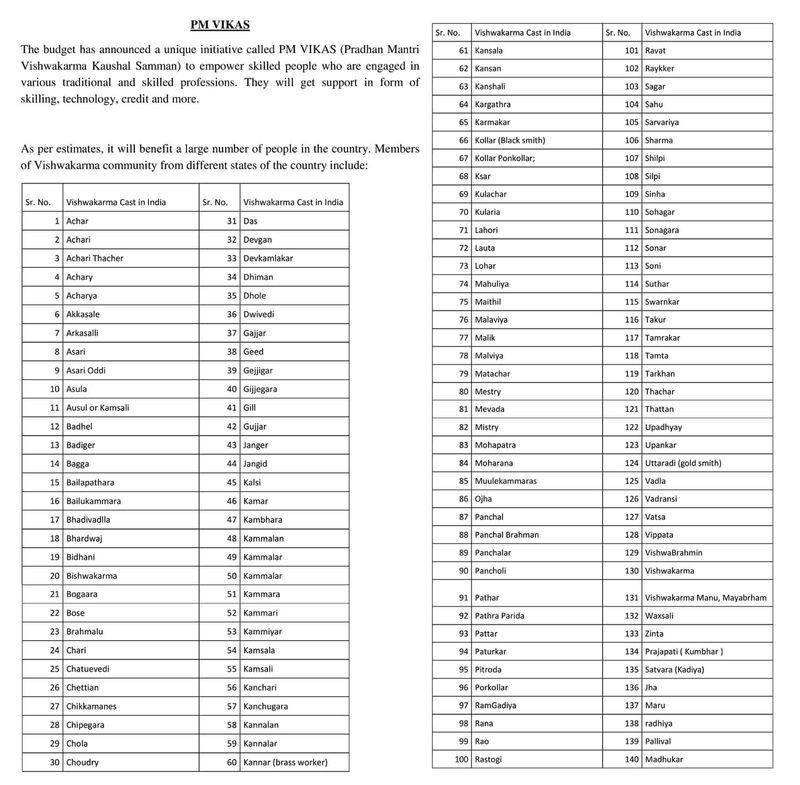 ಬಜೆಟ್ ಮುಗಿದ ಬಳಿಕ ನಡೆದ ಸುದ್ದಿಗೋಷ್ಠಿಯಲ್ಲೂ ಪ್ರಧಾನಿ ನರೇಂದ್ರ ಮೋದಿ ಕೇಂದ್ರ ಬಜೆಟ್ಅನ್ನು ಶ್ಲಾಘನೆ ಮಾಡಿದ್ದು ಮಾತ್ರವಲ್ಲದೆ, ಪಿಎಂ ವಿಶ್ವಕರ್ಮ ಕೌಶಲ್ ಸಮ್ಮಾನ್ ಕಾರ್ಯಕ್ರಮಕ್ಕೆ ಮೆಚ್ಚುಗೆ ಸೂಚಿಸಿದರು. ಇದು ಕರಕುಶಲಿಗರು ಹಾಗೂ ಕುಶಲಕರ್ಮಿಗಳ ಬದುಕಿನಲ್ಲಿ ಗೇಮ್ ಚೇಂಜರ್ ಆಗಿರಲಿದೆ. ಅವರನ್ನು ಮುಖ್ಯವಾಹಿನಿಗೆ ತರಲು ಸಹಾಯ ಮಾಡಲಿದೆ ಎಂದು ಹೇಳಿದರು. ಅದರೊಂದಿಗೆ ಭಾರತದ ಪ್ರಗತಿಯ ಹಾದಿಗೆ ಅವರೂ ಕೂಡ ಸಹಾಯ ಮಾಡಲಿದ್ದಾರೆ ಎಂದು ತಿಳಿಸಿದರು. ದೇಶದಲ್ಲಿ ವಿಶ್ವಕರ್ಮ ಸಮುದಾಯವನ್ನು ಭಿನ್ನ ಭಿನ್ನ ಹೆಸರುಗಳಿಂದ ಕರೆಯಲಾಗುತ್ತದೆ. 140 ಜಾತಿಗಳನ್ನು ವಿಶ್ವಕರ್ಮ ಸಮುದಾಯ ಎನ್ನಲಾಗುತ್ತದೆ.