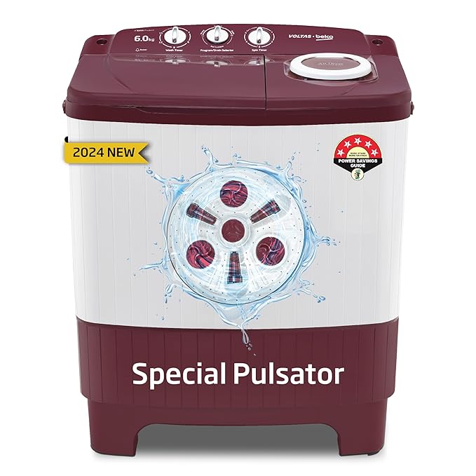 ಇದು 5 ಸ್ಟಾರ್ ಎನರ್ಜಿ ರೇಟಿಂಗ್ ಹೊಂದಿರುವ ಸೆಮಿ-ಆಟೋಮ್ಯಾಟಿಕ್ ವಾಷಿಂಗ್ ಮಷಿನ್ ಆಗಿದೆ. ಇದು ಏರ್ ಡ್ರೈ, ವಿಂಗ್ಸ್ ಪಲ್ಸೇಟರ್, ಡ್ರೈ ಸ್ಪಿನ್ ನಂತಹ ವೈಶಿಷ್ಟ್ಯಗಳನ್ನು ಹೊಂದಿದೆ. 6 ಕೆಜಿ ಸಾಮರ್ಥ್ಯವಿರುವ ಈ ವೋಲ್ಟಾಸ್ ವಾಷಿಂಗ್ ಮಷಿನ್ ಬರ್ಗಂಡಿ ಬಣ್ಣದ್ದಾಗಿದ್ದು, ಇದರಲ್ಲಿ ಬಟ್ಟೆ ಒಗೆಯುವುದರಿಂದ ನೀರು ಮತ್ತು ವಿದ್ಯುತ್ ಬಳಕೆ ಕಡಿಮೆಯಾಗುತ್ತದೆ. ಈ ಟಾಪ್ ಲೋಡ್ ವಾಷಿಂಗ್ ಮೆಷಿನ್ ನಲ್ಲಿ ಬಟ್ಟೆ ಒಗೆಯುವುದು ತುಂಬಾ ಸುಲಭ ಮತ್ತು ಬಟ್ಟೆಗಳು ಇದರಲ್ಲಿ ತುಂಬಾ ಸ್ವಚ್ಛವಾಗಿ ತೊಳೆಯಲ್ಪಡುತ್ತವೆ.