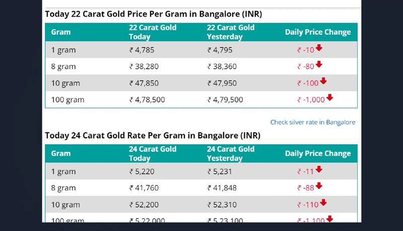 ಇಂದು ಬೆಂಗಳೂರು, ಮುಂಬೈ ಸೇರಿ ದೇಶದ ಪ್ರಮುಖ ನಗರಗಳಲ್ಲಿ ಬಂಗಾರದ ದರದಲ್ಲಿ ಗ್ರಾಂನಲ್ಲಿ 10 ರೂಪಾಯಿಯ ಇಳಿಕೆ ಆಗಿದೆ