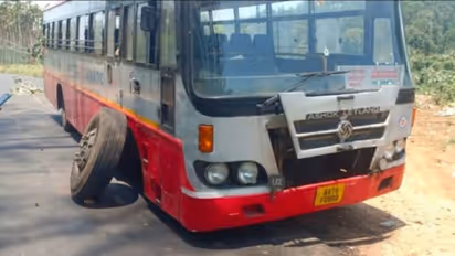 ಚಿಕ್ಕಮಗಳೂರು (ಮಾ.26): ಜಿಲ್ಲೆಯ ಎನ್.ಆರ್.ಪುರ ತಾಲೂಕಿನಲ್ಲಿ ಕೆಎಸ್ಆರ್ಟಿಸಿ (KSRTC) ಬಸ್ಸಿನ ನಿರ್ವಹಣಾ ವೈಫಲ್ಯಕ್ಕೆ ಸಾಕ್ಷಿಯಾದ ಭೀಕರ ಘಟನೆಯೊಂದು ನಡೆದಿದ್ದು, ಅದೃಷ್ಟವಶಾತ್ ದೊಡ್ಡ ಅನಾಹುತವೊಂದು ತಪ್ಪಿದೆ. ಎನ್.ಆರ್.ಪುರ ತಾಲೂಕಿನ ಬಾಳೆಹೊನ್ನೂರಿನ ಕಾಲಭೈರವೇಶ್ವರ ದೇಗುಲದ ಬಳಿ ಸರ್ಕಾರಿ ಬಸ್ಸೊಂದು ಪ್ರಯಾಣಿಕರಿಂದ ತುಂಬಿ ಚಲಿಸುತ್ತಿದ್ದಾಗಲೇ ಅದರ ಹಿಂಭಾಗದ ಚಕ್ರವು ಇದ್ದಕ್ಕಿದ್ದಂತೆ ಕಳಚಿ ರಸ್ತೆಗೆ ಬಿದ್ದಿದೆ. ಬಸ್ ಚಲನೆಯಲ್ಲಿದ್ದಾಗಲೇ ಈ ತಾಂತ್ರಿಕ ದೋಷ ಸಂಭವಿಸಿದ್ದರಿಂದ ಚಾಲಕ ತಕ್ಷಣವೇ ಬಸ್ಸನ್ನು ನಿಯಂತ್ರಿಸುವಲ್ಲಿ ಯಶಸ್ವಿಯಾಗಿದ್ದಾರೆ. ಇದರಿಂದಾಗಿ ಬಸ್ಸಿನಲ್ಲಿದ್ದ ಹತ್ತಾರು ಪ್ರಯಾಣಿಕರು ಯಾವುದೇ ಪ್ರಾಣಾಪಾಯವಿಲ್ಲದೆ ಕೂದಲೆಳೆ ಅಂತರದಲ್ಲಿ ಪಾರಾಗಿದ್ದಾರೆ.