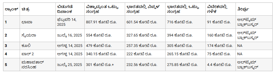 2025 ರ ಟಾಪ್ 5 ಭಾರತೀಯ ಚಿತ್ರಗಳು ಯಾವು?