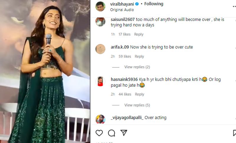 ಇತ್ತೀಚೆಗೆ ನಟಿ ಪುಷ್ಪಾ ಕಾರ್ಯಕ್ರಮದಲ್ಲಿ ಭಾಗಿಯಾಗಿದ್ದು ಗ್ರೀನ್ ಲೆಹಂಗಾದಲ್ಲಿ ಮಿಂಚಿದ್ದಾರೆ. ಹಿಂದಿಯಲ್ಲಿ ಡಯಲಾಗ್ ಹೇಳಿದ ನಟಿ ತಮ್ಮ ಎಂದಿನ ಸ್ಟೈಲ್ನಲ್ಲಿ ಒಂದು ಸ್ಮೈಲ್ ಕೊಟ್ಟಿದ್ದಾರೆ. ಫೇಮಸ್ ಪಾಪ್ಪರಾಜಿ ವೈರಲ್ ಭಯಾನಿ ಪುಟದಲ್ಲಿ ನಟಿಯ ವಿಡಿಯೋ ಶೇರ್ ಮಾಡಿದ್ದು ನೆಟ್ಟಿಗರು ಇದಕ್ಕೆ ಬೇರೆ ಬೇರೆ ರೀತಿಯಾಗಿ ಕಮೆಂಟ್ ಮಾಡುತ್ತಿದ್ದಾರೆ. ನೆಟ್ಟಿಗರೊಬ್ಬರು ಜನರಿಗೆ ಯಾವ ಆಂಗಲ್ನಲ್ಲಿ ಈಕೆ ನ್ಯಾಷನಲ್ ಕ್ರಶ್ ಆಗಿ ಕಾಣುತ್ತಾಳೋ ಗೊತ್ತಿಲ್ಲ. ಈಕೆಗಿಂತ ಎಷ್ಟು ಚಂದದ ನಟಿಯರಿದ್ದಾರೆ ಎಂದು ಕಮೆಂಟ್ ಮಾಡಿದ್ದಾರೆ.