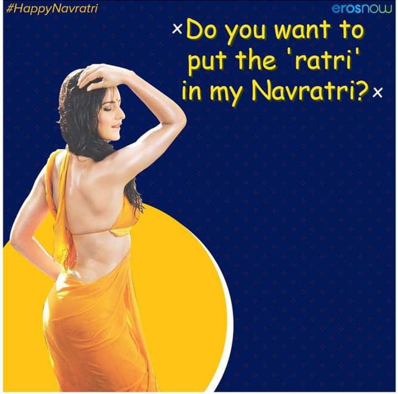 ಬೀ ನಾಟಿ, ಸ್ವೀಟ್ ತೋ ಮಿಠಾಯಿ ಭೀ ಹೈ(ನಾಟಿಯಾಗಿ, ಸ್ವೀಟ್ಗೆ ಮಿಠಾಯಿ ಇದೆ) ಎಂದು ಕ್ಯಾಪ್ಶನ್ ಕೊಡಲಾಗಿತ್ತು. ಇನ್ನೊಂದರಲ್ಲಿ ಕತ್ರೀನಾ ಕೈಫ್ ಫೋಟೋ ಹಾಕಿ, ನಿಮ್ಮ ರಾತ್ರಿಯನ್ನು ನನ್ನ ನವರಾತ್ರಿಗೆ ಹಾಕಬೇಕಾ ಎಂದು ಪ್ರಶ್ನಿಸಲಾಗಿದೆ.