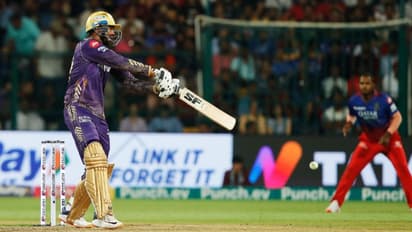 ಇಲ್ಲಿನ ಚಿನ್ನಸ್ವಾಮಿ ಮೈದಾನದಲ್ಲಿ ಗೆಲ್ಲಲು 183 ರನ್ಗಳ ಸ್ಪರ್ಧಾತ್ಮಕ ಗುರಿ ಬೆನ್ನತ್ತಿದ ಕೋಲ್ಕತಾ ನೈಟ್ ರೈಡರ್ಸ್ ತಂಡಕ್ಕೆ ಸುನಿಲ್ ನರೈನ್ ಹಾಗೂ ಫಿಲ್ ಸಾಲ್ಟ್ ಸ್ಪೋಟಕ ಆರಂಭ ಒದಗಿಸಿಕೊಟ್ಟರು. ಆರ್ಸಿಬಿ ಬೌಲರ್ಗಳನ್ನು ಮನಬಂದಂತೆ ದಂಡಿಸಿದ ಈ ಜೋಡಿ ಪವರ್ ಪ್ಲೇನಲ್ಲೇ 85 ರನ್ ಕಲೆಹಾಕಿತು. ಈ ಜೋಡಿಯನ್ನು ಬೇರ್ಪಡಿಸುವಲ್ಲಿ ಮಯಾಂಕ್ ದಾಗರ್ ಯಶಸ್ವಿಯಾದರು. 500ನೇ ಟಿ20 ಪಂದ್ಯವನ್ನಾಡಿದ ನರೈನ್ ಕೇವಲ 22 ಎಸೆತಗಳಲ್ಲಿ 2 ಬೌಂಡರಿ ಹಾಗೂ 5 ಮುಗಿಲೆತ್ತರದ ಸಿಕ್ಸರ್ಗಳ ನೆರವಿನಿಂದ 47 ರನ್ ಸಿಡಿಸಿ ವಿಕೆಟ್ ಒಪ್ಪಿಸಿದರು. ಇದರ ಬೆನ್ನಲ್ಲೇ ಇಂಪ್ಯಾಕ್ಟ್ ಪ್ಲೇಯರ್ ಆಗಿ ಕಣಕ್ಕಿಳಿದ ಕನ್ನಡದ ವೇಗಿ ವೈಶಾಖ್ ವಿಜಯ್ ಕುಮಾರ್, ತಾವೆಸೆದ ಮೊದಲ ಓವರ್ನ 5ನೇ ಎಸೆತದಲ್ಲೇ ಫಿಲ್ ಸಾಲ್ಟ್ ಬಲಿ ಪಡೆದರು. ಸಾಲ್ಟ್ 20 ಎಸೆತದಲ್ಲಿ 30 ರನ್ ಬಾರಿಸಿ ವಿಕೆಟ್ ಒಪ್ಪಿಸಿದರು.