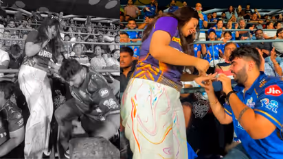 ಮುಂಬೈ (ಮಾ.30) ಐಪಿಎಲ್ ಟೂರ್ನಿ ಕಾವು ಹಚ್ಚಾಗಿದೆ. ಮೊದಲ ಪಂದ್ಯದಲ್ಲಿ ಆರ್ಸಿಬಿ ಗೆಲುವು ಕಂಡರೆ, 2ನೇ ಪಂದ್ಯದಲ್ಲಿ ಮುಂಬೈ ಇಂಡಿಯನ್ಸ್ ಗೆದ್ದು ಬೀಗಿದೆ. ಮುಂಬೈ ಇಂಡಿಯನ್ಸ್ ಹಾಗೂ ಕೆಕೆಆರ್ ನಡುವಿನ ಪಂದ್ಯದಲ್ಲಿ ವಿಶೇಷ ಘಟನೆಯೊಂದು ನಡೆದಿದೆ. ಕ್ರೀಡಾಂಗಣದಲ್ಲಿ ಕುಳಿತು ಪಂದ್ಯ ವೀಕ್ಷಿಸುತ್ತಿದ್ದ ಮುಂಬೈ ಇಂಡಿಯನ್ಸ್ ಅಭಿಮಾನಿ ಹಾಗೂ ಕೆಕೆಆರ ಅಭಿಮಾನಿ ನಡುವಿನ ಪ್ರೀತಿಗೆ ಗ್ರೀನ್ ಸಿಗ್ನಲ್ ಸಿಕ್ಕ ಘಟನೆ ನಡೆದಿದೆ. ಆದರೆ ಮುಂಬೈ ಅಭಿಮಾನಿ ಮಂಡಿಯೂರಿ ಪ್ರಪೋಸ್ ಮಾಡಲು ಮುಂದಾದಾಗ ಆಯತಪ್ಪಿದ್ದಾನೆ. ಪರಿಮಾಮ ತಂದಿದ್ದ ರಿಂಗ್ ಕಳೆದುಹೋದ ಘಟನೆ ನಡೆದಿದೆ.