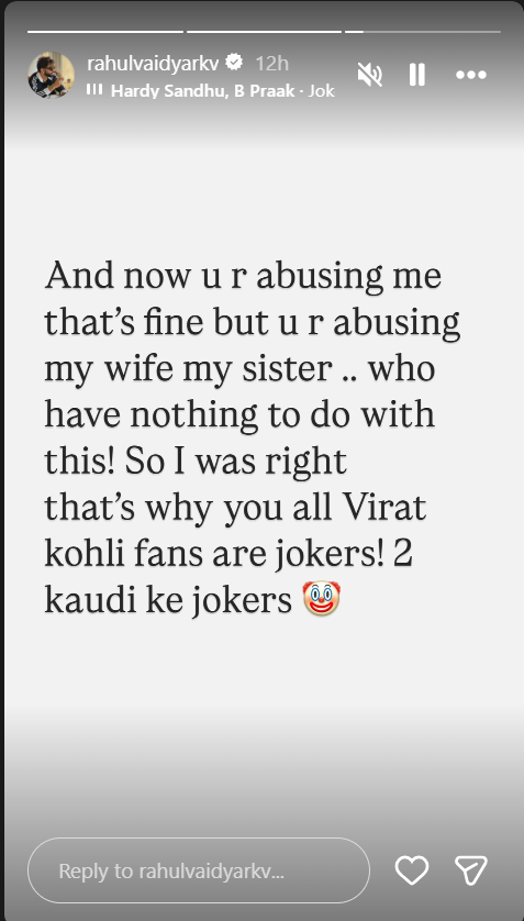 ರಾಹುಲ್ ವೈದ್ಯ ಈ ಮಾತಗಳನ್ನು ಹೇಳಿದ ಬೆನ್ನಲ್ಲೇ ವಿರಾಟ್ ಕೊಹ್ಲಿ ಅಭಿಮಾನಿಗಳು ಸೋಶಿಯಲ್ ಮೀಡಿಯಾದಲ್ಲಿ ಭಾರಿ ಆಕ್ರೋಶ ಹೊರಹಾಕಿದ್ದಾರೆ. ರಾಹುಲ್ ವೈದ್ಯ ವಿರುದ್ದ ಸೋಶಿಯಲ್ ಮೀಡಿಯಾದಲ್ಲಿ ಟ್ರೋಲ್ ಮಾಡಲಾಗುತ್ತಿದೆ. ಇದರಿಂದ ಮತ್ತಷ್ಟು ಆಕ್ರೋಶಗೊಂಡಿರುವು ರಾಹುಲ್ ವೈದ್ಯ, ವಿರಾಟ್ ಕೊಹ್ಲಿ ಅಭಿಮಾನಿಗಳು ಜೋಕರ್ಸ್ ಎಂದು ಕರೆದಿದ್ದಾರೆ. ಇಷ್ಟೇ ಅಲ್ಲ ಕೊಹ್ಲಿ ಅಭಿಮಾನಿಗಳು ನನ್ನ ವಿರುದ್ದ ಟೀಕೆ, ಆಕ್ರೋಶ ಹೊರಹಾಕುವುದು ಸರಿ. ಆದರೆ ನನ್ನ ಕುಟುಂಬವನ್ನು ಎಳೆದು ತರುವುದು ಸರಿಯಲ್ಲ. ಇದೇ ಕಾರಣಕ್ಕೆ ನಾನು ಸರಿಯಾಗಿ ಹೇಳಿದ್ದೇನೆ, ವಿರಾಟ್ ಕೊಹ್ಲಿ ಅಭಿಮಾನಿಗಳು ಕೇವಲ ಜೋಕರ್ಸ್ ಎಂದಿದ್ದಾರೆ.