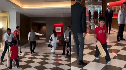 ಹೊಟೆಲ್ನಲ್ಲಿ ಈ ಘಟನೆ ನಡೆದಿದೆ. ವಿರಾಟ್ ಕೊಹ್ಲಿ ಆಗಮಿಸುತ್ತಿದ್ದಂತೆ ಹೊಟೆಲ್ ಸಿಬ್ಬಂದಿಗಳು ವಿರಾಟ್ ಕೊಹ್ಲಿ ಹತ್ತಿರ ಯಾರು ಸುಳಿಯದಂತೆ ಬೌನ್ಸರ್ ರೀತಿ ನಿಂತಿದ್ದಾರೆ. ಇದರ ನಡುವೆ ಇದೇ ಹೊಟೆಲ್ನಲ್ಲಿದ್ದ ಕೊಹ್ಲಿಯ ಪುಟಾಣಿ ಫ್ಯಾನ್ ಕೊಹ್ಲಿ ಭೇಟಿ ಮಾಡಿ ಆಟೋಗ್ರಾಫ್ ಪಡೆಯಲು ಭಾರಿ ತಯಾರಿ ಮಾಡಿದ್ದ. ಬ್ಯಾಟ್ ಹಿಡಿದುಕೊಂಡು ಕಾಯುತ್ತಾ ನಿಂತಿದ್ದಾನೆ. ಕೊಹ್ಲಿ ಆಗಮಿಸುತ್ತಿದ್ದಂತೆ ಆಟೋಗ್ರಾಫ್ಗಾಗಿ ಕೊಹ್ಲಿಯತ್ತ ತೆರಳುವ ಪ್ರಯತ್ನ ಮಾಡಿದ್ದಾನೆ.