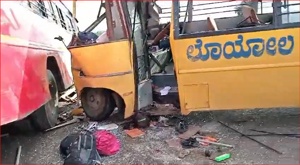 ಕಪ್ಗಲ್ ನಿಂದ ಮಾನ್ವಿ ಕಡೆ ಹೊರಟಿದ್ದ ಖಾಸಗಿ ಶಾಲಾ ವಾಹನದಲ್ಲಿ 30ಕ್ಕೂ ಅಧಿಕ ಮಕ್ಕಳು ಪ್ರಯಾಣಿಸುತ್ತಿದ್ದರು ಎನ್ನಲಾಗಿದೆ. ಇದೇ ವೇಳೆ ಸಿಂಧನೂರು ಕಡೆಯಿಂದ ರಾಯಚೂರಿಗೆ ಹೊರಟಿದ್ದ ಸಾರಿಗೆ ಬಸ್. ಎರಡೂ ಬಸ್ಗಳು ಮುಖಾಮುಖಿ ಭೀಕರವಾಗಿ ಡಿಕ್ಕಿಯಾದ ಪರಿಣಾಮ ನಾಲ್ವರ ಮಕ್ಕಳ ಕಾಲು ಕಟ್ ಆಗಿದ್ದು, ಹಲವಾರು ಮಕ್ಕಳು ಗಾಯಗೊಂಡಿದ್ದಾರೆ.