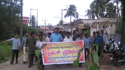 ಕೊಪ್ಪ(ಅ.04): ರಸ್ತೆ ದುರಸ್ತಿಗಾಗಿ ಆಗ್ರಹಿಸಿ ಕೊಪ್ಪ ಅಬ್ಬಿಗದ್ದೆ ಗ್ರಾಮಸ್ಥರು, ಆಟೋ ಚಾಲಕರು ರಸ್ತೆ ತಡೆ ನಡೆಸಿ ರಸ್ತೆಯಲ್ಲಿ ಬಾಳೆ ಗಿಡ ನೆಡುವ ಮೂಲಕ ಪ್ರತಿಭಟನೆ ನಡೆಸಿದರು. ಪಟ್ಟಣದ ವಾಟರ್‌ಟ್ಯಾಂಕ್‌ ವೃತ್ತದಿಂದ ಕಾಚ್‌ಗಲ್‌ವರೆಗಿನ ಅಬ್ಬಿಗದ್ದೆಯಿಂದ ಸೋಮ್ಲಾಪುರದವರೆಗಿನ ರಸ್ತೆ ಸಂಪೂರ್ಣವಾಗಿ ಹದಗೆಟ್ಟಿದ್ದು, ಅಲ್ಲಲ್ಲಿ ಬಿದ್ದಿರುವ ಬೃಹತ್‌ ಹೊಂಡಗುಂಡಿಗಳಿಂದಾಗಿ ವಾಹನಗಳ ಹಾಗೂ ಸಾರ್ವಜನಿಕರ ಓಡಾಟಕ್ಕೆ ತೊಂದರೆಯಾಗಿದೆ. ಕಾಚ್‌ಗಲ್‌, ಸೋಮ್ಲಾಪುರ, ನೇತಾಜಿನಗರ, ಹನುಮಾನ್‌ ನಗರ ಮುಂತಾದ ಗ್ರಾಮೀಣ ಭಾಗದಿಂದ ಬರುವ ವಿದ್ಯಾರ್ಥಿಗಳು, ಪಟ್ಟಣಕ್ಕೆ ಬರುವ ಗ್ರಾಮಸ್ಥರು ಇದೇ ರಸ್ತೆಯನ್ನು ಬಳಸಬೇಕಾದ ಅನಿವಾರ್ಯತೆ ಇದೆ. ಬೆಳಗ್ಗೆ ಮತ್ತು ಸಂಜೆ ಶಾಲಾ ಸಮಯದಲ್ಲಿ ಅತಿಯಾದ ವಿದ್ಯಾರ್ಥಿಗಳ, ಸಾರ್ವಜನಿಕರ ಹಾಗೂ ವಾಹನಗಳ ಓಡಾಟ ಹೆಚ್ಚಾಗಿದ್ದು ರಸ್ತೆ ಅಪಘಾತಗಳು ನಡೆಯುವ ಸಂಭವ ಹೆಚ್ಚಿದ್ದು ಈ ಬಗ್ಗೆ ಜನಪ್ರತಿನಿಧಿಗಳಿಗೆ ಸಂಬಂಧ ಪಟ್ಟ ಅಧಿಕಾರಿಗಳಿಗೆ ಎಷ್ಟೇ ಮನವಿ ಸಲ್ಲಿಸಿದರೂ ಪ್ರಯೋಜನವಾಗಿಲ್ಲ. ಈ ಹಿನ್ನೆಲೆಯಲ್ಲಿ ರಸ್ತೆ ತಡೆ ಮಾಡಿ ರಸ್ತೆಯ ಹೊಂಡಗಳಲ್ಲಿ ಬಾಳೆ ಗಿಡ ನೆಡುವ ಮೂಲಕ ಪ್ರತಿಭಟನೆ ನಡೆಸಿದರು. ಗ್ರಾಪಂ ಕೆಲವು ಸದಸ್ಯರು, ಉಪಾಧ್ಯಕ್ಷರು, ತಾಪಂ ಮಾಜಿ ಅಧ್ಯಕ್ಷರು ಇದೇ ಪ್ರದೇಶದಲ್ಲಿ ವಾಸವಿದ್ದು ದಿನನಿತ್ಯ ಇದೇ ರಸ್ತೆಯಲ್ಲಿ ಓಡಾಡುತ್ತಿದ್ದರೂ ಈ ರಸ್ತೆ ಬಗ್ಗೆ ಗಮನ ಹರಿಸದಿರುವುದು ಶೋಚನೀಯ ಎಂದು ಪ್ರತಿಭಟನೆಯಲ್ಲಿ ಭಾಗವಹಿಸಿದ ಕೆಲವು ಪಕ್ಷದ ಮುಖಂಡರು ತಿಳಿಸಿದರು. ಕಳೆದ ಒಂದು ವರ್ಷದಿಂದ ದುರಸ್ತಿ ಕಾಣದ ರಸ್ತೆಯನ್ನು ತಿಂಗಳೊಳಗಾಗಿ ಪ್ರಯಾಣಕ್ಕೆ ಯೋಗ್ಯವಾಗುವಂತೆ ದುರಸ್ತಿ ಮಾಡಬೇಕೆಂದು ಪ್ರತಿಭಟನಾಕಾರರು ಒತ್ತಾಯಿಸಿ ಕೊಪ್ಪ ತಹಸೀಲ್ದಾರ್‌ ಮೂಲಕ ಶಾಸಕರು ಹಾಗೂ ಸರ್ಕಾರಕ್ಕೆ ಮನವಿ ಸಲ್ಲಿಸಿದರು. ಆಟೋ ಚಾಲಕರಾದ ಪಾಲಿ, ವಿಠಲ, ರವಿ, ಷಣ್ಮುಖ, ಗ್ರಾಮಸ್ಥರಾದ ಶರೀಫ್‌, ಬಾಲ್‌ರಾಜ್‌, ಧರಣೇಂದ್ರಪ್ಪ, ಕಾಂಗ್ರೆಸ್‌ ಮುಖಂಡ ಸುಧೀರ್‌ ಕುಮಾರ್‌ ಮುರೊಳ್ಳಿ, ಅಸಗೋಡು ನಾಗೇಶ್‌, ಕೆ.ಎಸ್‌.ಸುಬ್ರಹ್ಮಣ್ಯ ಶೆಟ್ಟಿ, ನುಗ್ಗಿ ಮಂಜುನಾಥ್‌, ಬರ್ಕತ್‌ ಅಲಿ, ಸಾಧಿಕ್‌ ನಾರ್ವೆ, ಜಾತ್ಯತೀತ ಜನತಾದಳದ ಬಿ.ಮಹಮ್ಮದ್‌, ತೌಸಿಫ್‌, ಭಾರತೀಯ ಮಾನವ ಹಕ್ಕು ಸಂರಕ್ಷಣಾ ವೇದಿಕೆಯ ಹಸನ್‌, ಚಂದ್ರಶೇಖರ್‌, ಹುಸೇನ್‌ ಹಾಗೂ ಸಾರ್ವಜನಿಕರು ಪಾಲ್ಗೊಂಡಿದ್ದರು.