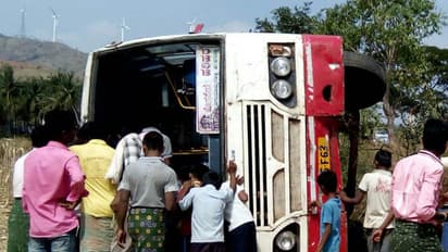 ಹರಪನಹಳ್ಳಿ (ನ.14): ಈಶಾನ್ಯ ಸಾರಿಗೆ ಸಂಸ್ಥೆಗೆ ಸೇರಿದ ಬಸ್ನ ಸ್ಟೆರಿಂಗ್ ಕಟ್ ಆದ ಪರಿಣಾಮ ಬಸ್ ಪಲ್ಟಿಯಾಗಿ ಗಂಭೀರ ಗಾಯಗೊಂಡ ಮಹಿಳೆ ಸೇರಿದಂತೆ ಐದು ಜನರು ಗಾಯಗೊಂಡಿರುವ ಘಟನೆ ತಾಲೂಕಿನ ಕಣಿವಿಹಳ್ಳಿ ಸಮೀಪ ಸೋಮವಾರ ಜರುಗಿದೆ.