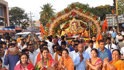 ಚಿಕ್ಕಮಗಳೂರು (ಡಿ.12): ಚಂದ್ರದ್ರೋಣ ಪರ್ವತದಲ್ಲಿರುವ ದತ್ತಪೀಠದಲ್ಲಿ ಮಂಗಳವಾರ ವಿಎಚ್ಪಿ, ಬಜರಂಗದಳ ಹಮ್ಮಿಕೊಂಡಿರುವ ದತ್ತಜಯಂತಿ ಉತ್ಸವದ ಎರಡನೇ ದಿನವಾದ ಸೋಮವಾರ ನಗರದಲ್ಲಿ ಶೋಭಾಯಾತ್ರೆ ಅತ್ಯಂತ ವೈಭವವಾಗಿ ನಡೆಯಿತು.