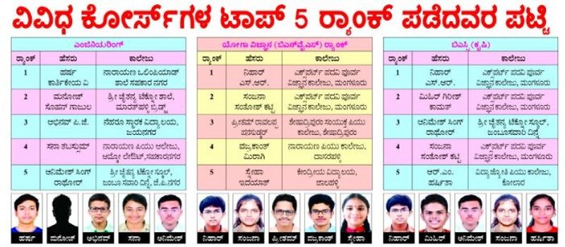 ಉಳಿದ ಕೋರ್ಸ್ಗಳಲ್ಲೂ ಬೆಂಗಳೂರಿಗರು ಪ್ರಮುಖ ಬ್ಯಾಂಕ್ ಗಿಟ್ಟಿಸಿದ್ದಾರೆ. ಬೆಂಗಳೂರಿನ ಸಹಕಾರನಗರದ ಒಲಿಂಪಿಯಾಡ್ ಶಾಲೆ, ಮಾರತ್ ಹಳ್ಳಿ ಬ್ರಿಡ್ಜ್ನ ಶ್ರೀ ಚೈತನ್ಯ ಚಿಕ್ಕೋ ಶಾಲೆ, ಜಯನಗರದ ನೆಹರೂ ಸ್ಮಾರಕ ವಿದ್ಯಾಲಯ, ಅಯ್ಯೋ ಲೇಔಟ್ ನಾರಾಯಣ ಪಿಯು ಕಾಲೇಜು, ಜೆ.ಪಿ.ನಗರದ ಶ್ರೀ ಚೈತನ್ಯ ಟೆಕ್ಕೋ ಸ್ಕೂಲ್, ಶೇಷಾದ್ರಿಪುರಂ ಸಂಯುಕ್ತ ಪದವಿ ಪೂರ್ವ ಕಾಲೇಜು, ದಾಸರಹಳ್ಳಿಯ ನಾಡಿ ರಾಯಣ ಪಿಯು ಕಾಲೇಜು, ಜಾಲಹಳ್ಳಿಯ ಕೇಂದ್ರೀಯ ವಿದ್ಯಾಲಯ, ಯಲಹಂಕ ಉಪನಗರ ವೈಟ್ಫೀಲ್ಡ್ ನಾರಾಯಣ ಇ ಟೆಕ್ನೋ ಸ್ಕೂಲ್ಗಳ ವಿದ್ಯಾರ್ಥಿಗಳು ಸಾಧನೆ ಮಾಡಿದ್ದಾರೆ.