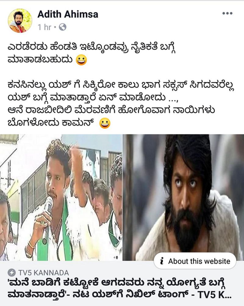 ನಿಖಿಲ್ ಈ ಹೇಳಿಕೆ ಯಶ್ ಅಭಿಮಾನಿಗಳನ್ನು ಕೆರಳಿಸಿದೆ. ನಿಖಿಲ್ರನ್ನು ಹೇಗೆಲ್ಲಾ ಟ್ರೋಲ್ ಮಾಡ್ತಾ ಇದ್ದಾರೆ ನೋಡಿ.