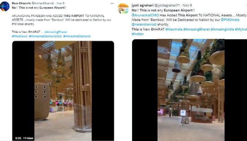 Claim: Video of the interior of an airport in Arunachal Pradesh, which has been constructed using bamboo | ಬಿದಿರು ಬಳಸಿ ನಿರ್ಮಿಸಲಾದ ಅರುಣಾಚಲ ಪ್ರದೇಶದ ವಿಮಾನ ನಿಲ್ದಾಣದ ಒಳಭಾಗದ ವಿಡಿಯೋ
