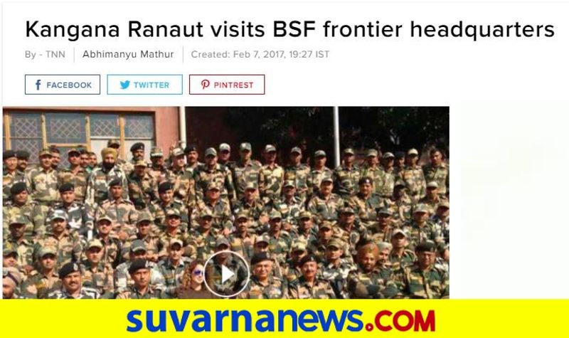 ಟೈಮ್ಸ್ ಆಫ್ ಇಂಡಿಯಾದ ವರದಿಯ ಪ್ರಕಾರ, ಇವು ಫೆಬ್ರವರಿ 7, 2017 ರಂದು ಜಮ್ಮುವಿನ BSF ಫ್ರಂಟಿಯರ್ ಹೆಡ್ಕ್ವಾರ್ಟರ್ಗೆ ಕಂಗನಾ ಭೇಟಿ ನೀಡಿದ ಚಿತ್ರಗಳಾಗಿವೆ.