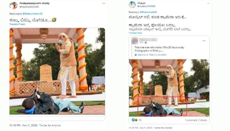Claim: PM Narendra Modi’s Photo Showing Photographer on the Ground | ನೆಲದ ಮೇಲೆ ಮಲಗಿ ಪ್ರಧಾನಿ ಮೋದಿ ಫೋಟೋ ಕ್ಲಿಕ್ಕಿಸುತ್ತಿರುವ ಛಾಯಾಗ್ರಾಹಕ
