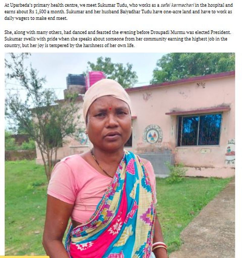 Step 2: ಇನ್ನು ಎರಡನೇ ಫೋಟೋ ಇತ್ತೀಚೆಗೆ ರಾಷ್ಟ್ರಪತಿಯಾಗಿ ಅಧಿಕಾರ ಸ್ವೀಕರಿಸಿರುವ ದ್ರೌಪದಿ ಮುರ್ಮು ಅವರದ್ದಲ್ಲ. ಇದು ಮುರ್ಮು ಅವರು ಹುಟ್ಟಿದ ಹಳ್ಳಿಯಾದ ಒಡಿಶಾದ ಉಪರಬೇಡ ಗ್ರಾಮದ ಆಸ್ಪತ್ರೆಯೊಂದರಲ್ಲಿ ಸ್ಚಚ್ಛತಾ ಕಾರ್ಯಕರ್ತೆ ಸುಕುಮಾರ್ ತುಡು ಅವರದ್ದು. ಸುಕುಮಾರ್ ರಾಷ್ಟ್ರಪತಿ ಮುರ್ಮು ಕುರಿತು ನ್ಯೂಸ್ 18 (News 18) ವರದಿಯಲ್ಲಿ ತಮ್ಮ ಅಭಿಪ್ರಾಯ ವ್ಯಕ್ತಪಡಿಸಿದ್ದರು. ವರದಿಯ ಪ್ರಕಾರ, ಮುರ್ಮು ಅಧ್ಯಕ್ಷರಾಗಿ ಚುನಾಯಿತರಾಗುವ ಮೊದಲು ಅವರು ಅನೇಕರೊಂದಿಗೆ ನೃತ್ಯ ಮಾಡಿದರು ಮತ್ತು ಸಂಜೆ ಔತಣದಲ್ಲಿ ಭಾಗವಹಿಸಿದ್ದರು.