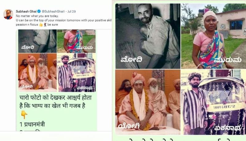 ನವದೆಹಲಿ (ಆ. 08): ನಾಲ್ಕು ರಾಜಕೀಯ ವ್ಯಕ್ತಿಗಳ ಯೌವ್ವನದ ಫೋಟೋಗಳು ಎಂದು ಹೇಳಲಾಗಿರುವ ಫೋಟೋ ಕೊಲಾಜ್ವೊಂದು ಸಾಮಾಜಿಕ ಮಾಧ್ಯಮದಲ್ಲಿ (Social Media) ವೈರಲ್ ಆಗಿದೆ. ಫೋಟೋಗಳಲ್ಲಿ ಪ್ರಧಾನಿ ನರೇಂದ್ರ ಮೋದಿ (PM Narendra Modi), ರಾಷ್ಟ್ರಪತಿ ದ್ರೌಪದಿ ಮುರ್ಮು (Droupadi Murmu), ಉತ್ತರ ಪ್ರದೇಶ ಮುಖ್ಯಮಂತ್ರಿ ಯೋಗಿ ಆದಿತ್ಯನಾಥ್ (Yogi Adityanath) ಮತ್ತು ಮಹಾರಾಷ್ಟ್ರ ಮುಖ್ಯಮಂತ್ರಿ ಏಕನಾಥ್ ಶಿಂಧೆ (Eknath Shinde) ಅವರದ್ದು ಎಂದು ಹೇಳಲಾಗಿದೆ.