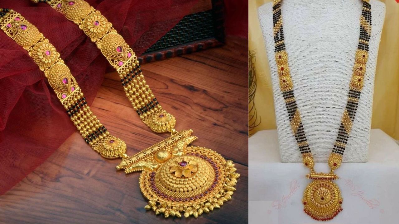 ಇತ್ತೀಚಿನ ಸಾಂಪ್ರದಾಯಿಕ ಚಿನ್ನದ ಮಂಗಳಸೂತ್ರ ವಿನ್ಯಾಸಗಳು: ಸೌಭಾಗ್ಯದ ಸಂಕೇತವಾದ ಮಂಗಳಸೂತ್ರವು ಈಗ ಕೇವಲ ಧಾರ್ಮಿಕ ಮತ್ತು ಸಾಂಪ್ರದಾಯಿಕ ನಂಬಿಕೆಯಾಗಿ ಉಳಿದಿಲ್ಲ, ಆದರೆ ಈಗ ಅದು ಟ್ರೆಂಡ್ ಮತ್ತು ಫ್ಯಾಷನ್ನ ಪ್ರಮುಖ ಭಾಗವಾಗಿದೆ. ಶ್ರಾವಣ, ತೀಜ್, ಹಬ್ಬಗಳು ಅಥವಾ ಯಾವುದೇ ವಿಶೇಷ ಅಥವಾ ಶುಭ ಸಂದರ್ಭದಲ್ಲಿ ಮಹಿಳೆಯರು ತಮ್ಮ ಮಂಗಳಸೂತ್ರವನ್ನು ಧರಿಸುತ್ತಾರೆ. ಇತ್ತೀಚಿನ ದಿನಗಳಲ್ಲಿ ಜನರು ಕನಿಷ್ಠ ವಿನ್ಯಾಸವನ್ನು ಹೆಚ್ಚು ಧರಿಸುತ್ತಿದ್ದಾರೆ, ಏಕೆಂದರೆ ಅದು ಕಡಿಮೆ ಬೆಲೆಯಲ್ಲಿ ಲಭ್ಯವಿದೆ ಮತ್ತು ಧರಿಸಲು ಫ್ಯಾನ್ಸಿ ಆಗಿ ಕಾಣುತ್ತದೆ. ಆದರೆ ಶ್ರಾವಣ ಮಾಸ ನಡೆಯುತ್ತಿದೆ ಮತ್ತು ರಕ್ಷಾಬಂಧನ ಮತ್ತು ಹರಿಯಾಳಿ ತೀಜ್ ಕೂಡ ಬರಲಿದೆ, ಆದ್ದರಿಂದ ಇಂದು ನಾವು ನಿಮಗಾಗಿ ಸಾಂಪ್ರದಾಯಿಕ ಮಂಗಳಸೂತ್ರದ ಕೆಲವು ವಿನ್ಯಾಸಗಳನ್ನು ತಂದಿದ್ದೇವೆ, ಅದು ಈ ದಿನಗಳಲ್ಲಿ ಮಹಿಳೆಯರ ನೆಚ್ಚಿನದಾಗಿದೆ ಮತ್ತು ಈ ವಿನ್ಯಾಸಗಳು ಸಾಂಪ್ರದಾಯಿಕತೆಯೊಂದಿಗೆ ಆಧುನಿಕ ಸ್ಪರ್ಶವನ್ನು ಹೊಂದಿವೆ.