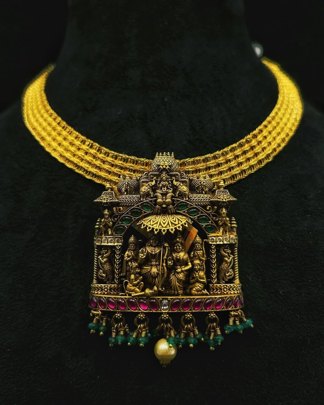 ಪ್ರತಿಯೊಂದು ಲಕ್ಷಣಗಳು - ಕಮಲದ ದಳಗಳು, ಮಾವಿನ ಎಲೆಗಳು, ನವಿಲುಗಳು ಮತ್ತು ದೇವಾಲಯದ ಕೆತ್ತನೆಗಳು ನಂಬಿಕೆ ಮತ್ತು ಸಮೃದ್ಧಿಯ ಕಥೆಗಳನ್ನು ಸಾಕಾರಗೊಳಿಸುತ್ತವೆ. ವಧುವಿನ ಹಾರದ ಭವ್ಯತೆಯಿಂದ ಹಿಡಿದು ಜುಮ್ಕಾದ ಸೂಕ್ಷ್ಮ ಹೊಳಪಿನವರೆಗೆ, ಸಾಂಪ್ರದಾಯಿಕ ಆಭರಣಗಳು ಆಧ್ಯಾತ್ಮಿಕ ಮತ್ತು ಸೌಂದರ್ಯ ಎರಡನ್ನೂ ಹೊಂದಿರುವ ಸೊಬಗನ್ನು ವ್ಯಕ್ತಪಡಿಸುತ್ತವೆ.