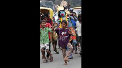 ಹನುಮ ಜಯಂತಿ ಅಂಗವಾಗಿ ಆಂಜನೇಯ ವೇಷಧಾರಿಯನ್ನು ಕಂಡ ಮಕ್ಕಳು ಪ್ರತಿಕ್ರಿಯ