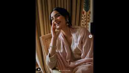 ಫೋಟೋಗಳಲ್ಲಿ ಗೋಲ್ಡನ್ ಎಂಬ್ರಾಯ್ಡರಿ ಹೊಂದಿರುವ  ಬ್ಲಶ್ ಪಿಂಕ್‌ ಬಣ್ಣದ ಸೂಟ್‌ ಧರಿಸಿ ಸೋನಂ ಕಪೋರ್‌ ಪೋಸ್‌ ನೀಡಿದ್ದಾರೆ ಅವರು ತಮ್ಮ ನೋಟವನ್ನು ಜುಮ್ಕಿ ಮತ್ತು ಕಡಗಳೊಂದಿಗೆ ವಿನ್ಯಾಸಗೊಳಿಸಿದರು.
