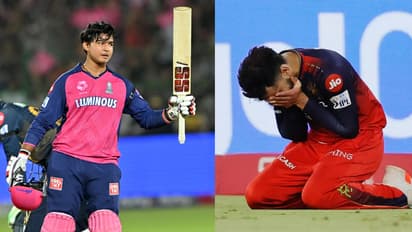 ಕೆಕೆಆರ್ ಎದುರಿನ ಪಂದ್ಯದಲ್ಲಿ ರಿಯಾನ್ ಪರಾಗ್ ಬೌಲಿಂಗ್ ಮಾಡುವಾಗ ಅಭಿಮಾನಿಯೊಬ್ಬರು ಮೈದಾನಕ್ಕೆ ನುಗ್ಗಿ ಕಾಲು ಮುಟ್ಟಿದರು.