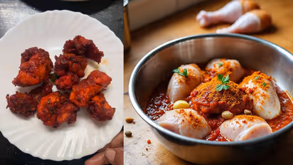 ಮ್ಯಾರಿನೇಟ್ ಮಾಡುವ ಮುನ್ನ ಮಾಂಸವನ್ನು ಎರಡರಿಂದ ಮೂರು ಬಾರಿ ಬಿಸಿನೀರಿನಲ್ಲಿ ತೊಳೆದುಕೊಂಡು ಚಿಕ್ಕ ಚಿಕ್ಕ ಪೀಸ್ಗಳನ್ನಾಗಿ ಮಾಡಿಕೊಳ್ಳಿ. ಚಿಕ್ಕ ಪೀಸ್ಗಳನ್ನಾಗಿ ಮಾಡಿಕೊಳ್ಳೋದರಿಂದ ಮಸಾಲೆಯನ್ನು ಚಿಕನ್ ಹೀರಿಕೊಳ್ಳುತ್ತದೆ. ಲೆಗ್ಪೀಸ್ ಮ್ಯಾರಿನೇಟ್ ಮಾಡುವ ಚಾಕುವಿನಿಂದ ಮಾಂಸದ ಮೇಲೆ ಸಣ್ಣ ಸಣ್ಣ ಗೆರೆ ಮಾಡಿಕೊಂಡರೆ ಚೆನ್ನಾಗಿ ಬೇಯುತ್ತದೆ.