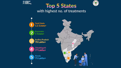 2011ರ ಸಾಮಾಜಿಕ-ಆರ್ಥಿಕ ಸಮೀಕ್ಷೆಯ ಆಧಾರದ ಮೇಲೆ ಬಡ ಕುಟುಂಬಗಳನ್ನು ಆಯ್ಕೆ ಮಾಡಲಾಗುತ್ತದೆ. ಕುಟುಂಬ ಸದಸ್ಯರ ಸಂಖ್ಯೆ, ವಯಸ್ಸು, ಲಿಂಗ ಮುಂತಾದ ಯಾವುದೇ ನಿರ್ಬಂಧಗಳಿಲ್ಲ. ಇತ್ತೀಚೆಗೆ 70 ವರ್ಷ ಮೇಲ್ಪಟ್ಟ ಎಲ್ಲಾ ಹಿರಿಯ ನಾಗರಿಕರನ್ನು (ಆರ್ಥಿಕ ಸ್ಥಿತಿಯನ್ನು ಲೆಕ್ಕಿಸದೆ) ಸೇರಿಸಲಾಗಿದೆ. ಇದರಿಂದ ಸುಮಾರು 4.5 ಕೋಟಿ ಕುಟುಂಬಗಳು ಲಾಭ ಪಡೆಯಲಿವೆ. ಸರ್ಕಾರಿ ಮತ್ತುಖಾಸಗಿ ಆಸ್ಪತ್ರೆಗಳಲ್ಲಿ ಉಚಿತ ಚಿಕಿತ್ಸೆ, ಶಸ್ತ್ರಚಿಕಿತ್ಸೆ,ಔಷಧಿಗಳು ಮತ್ತು ರೋಗನಿರ್ಣಯ ಪರೀಕ್ಷೆಗಳು ಲಭ್ಯ. ಇ-ಕಾರ್ಡ್ ಮೂಲಕ ಆಸ್ಪತ್ರೆಗಳಲ್ಲಿ ನೇರವಾಗಿ ಬಳಸಬಹುದು. 1900 ಕ್ಕೂ ಹೆಚ್ಚು ಕಾಯಿಲೆಗಳಿಗೆ ಇದನ್ನು ಬಳಸಬಹುದು.