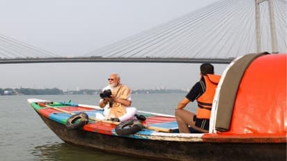 ಪವಿತ್ರ ಗಂಗಾ ನದಿಯ ಮಹತ್ವದ ಬಗ್ಗೆ ಎಕ್ಸ್ನಲ್ಲಿ ಬರೆದುಕೊಂಡಿರುವ ಮೋದಿ, "ಗಂಗಾ ನದಿ ಬಂಗಾಳದ ಆತ್ಮದ ಮೂಲಕ ಹರಿಯುತ್ತದೆ" ಎಂದು ಹೇಳಿದ್ದಾರೆ. ಚುನಾವಣೆಯ ಈ ಸಮಯದಲ್ಲಿ ಪಶ್ಚಿಮ ಬಂಗಾಳ ರಾಜ್ಯವನ್ನು ಅಭಿವೃದ್ಧಿಪಡಿಸುವ ಬದ್ಧತೆಯನ್ನು ಪ್ರಧಾನಿ ವ್ಯಕ್ತಪಡಿಸಿದ್ದಾರೆ. ಹೂಗ್ಲಿ ನದಿಯಲ್ಲಿ ಬೋಟ್ನಲ್ಲಿ ಸಾಗುತ್ತಿರುವ ತಮ್ಮ ಫೋಟೋಗಳನ್ನು ಅವರು ಹಂಚಿಕೊಂಡಿದ್ದಾರೆ.