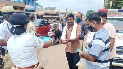 ಚಿತ್ರದುರ್ಗ(ಜೂ. 18) ಮಾಸ್ಕ್ ದಿನಾಚರಣೆ ಪ್ರಯುಕ್ತ ನಗರದ ಪ್ರಮುಖ ರಸ್ತೆಗಳಲ್ಲಿ ಪೊಲೀಸರು ಮಾಸ್ಕ್ ವಿತರಣೆ ಮಾಡಿದ್ದಾರೆ. ಮಾಸ್ಕ್ ಧರಿಸದೇ ವಾಹನ ಚಲಾಯಿಸುವವರಿಗೆ ಮಾಸ್ಕ್ ನೀಡಿದ ಟ್ರಾಫಿಕ್ ಪೊಲೀಸರು ಜಾಗೃತಿ ಮೂಡಿಸಿದ್ದಾರೆ.