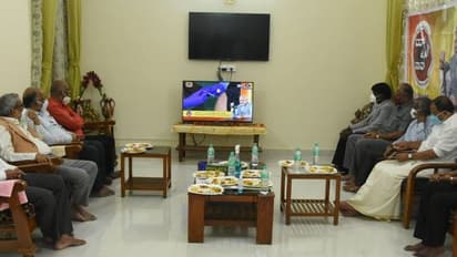 ಕರ್ನಾಟಕ ವಿವಿಯ ಕುಲಪತಿಗಳ ನಿವಾಸದಲ್ಲಿ ಭಾನುವಾರ ಕುಲಪತಿ ಡಾ.ಕೆ.ಬಿ.ಗುಡಸಿ ಸೇರಿದಂತೆ ಕೇಂದ್ರ ಸಚಿವ ಪ್ರಹ್ಲಾದ ಜೋಶಿ ಮತ್ತು ಶಿಕ್ಷಣ ತಜ್ಞರೊಂದಿಗೆ ಪ್ರಧಾನ ಮಂತ್ರಿಗಳ ಮನ್‌ ಕಿ ಬಾತ್‌ ಕಾರ್ಯಕ್ರಮವನ್ನು ವೀಕ್ಷಿಸಿದ  ಮುರಳೀಧರನ್‌