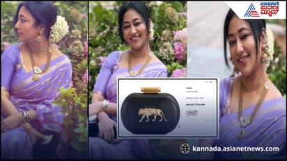 ಹೌದು, ವಿಜಯಲಕ್ಷ್ಮೀ ಕೈಯಲ್ಲಿರುವ ಈ ಕ್ಲಚ್ ಸಭ್ಯಸಾಚಿ ತಯಾರಿಸಿದಂತಹ ಕ್ಲಚ್ ಆಗಿದೆ. ಅದರ ಮೇಲೆ ಬೆಂಗಾಲ್ ಟೈಗರ್ ಚಿತ್ರವನ್ನು ಕೆತ್ತಲಾಗಿದೆ. ಈ ಕ್ಲಚ್ ಬೆಲೆ ಬರೋಬ್ಬರಿ 89ಸಾವಿರ ರೂಪಾಯಿಗಳಾಗಿವೆ.