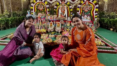 ನಟಿ ನೇಹಾ ರಾಮಕೃಷ್ಣ ಹಾಗೂ ಕವಿತಾ ಗೌಡ, ಸೋನು ಗೌಡ ಅವರು ನವರಾತ್ರಿ ಆಚರಣೆಯಲ್ಲಿ ಭಾಗಿಯಾಗಿದ್ದಾರೆ. ಈ ಕಾರ್ಯಕ್ರಮದಲ್ಲಿ ಕವಿತಾ ಗೌಡ ಮಗ, ನೇಹಾ ರಾಮಕೃಷ್ಣರ ಮಗಳು ಶಾರದಾ ಕೂಡ ಭಾಗಿಯಾಗಿದ್ದರು.