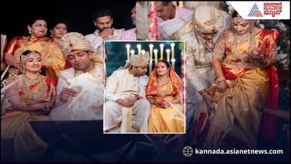 ಮದುವೆ ಸಮಾರಂಭದಲ್ಲಿ ವೈಷ್ಣವಿ ಗೌಡ ಹಳದಿ ಮತ್ತು ಕೆಂಪು ಬಣ್ಣದ ರೇಷ್ಮೆ ಸೀರೆಯುಟ್ಟಿದ್ದರೆ, ಅನುಕೂಲ್ ಮಿಶ್ರಾ (Anukul Mishra) ಪಂಚೆ ಮತ್ತು ಶೆರ್ವಾನಿ ಧರಿಸಿದ್ದಾರೆ. ಅಗ್ನಿ ಸಾಕ್ಷಿಯಾಗಿ, ಸಪ್ತಪದಿ ತುಳಿಯುವ ಸಿಂಧೂರ ಹಚ್ಚುವ ಫೋಟೊಗಳನ್ನು ನಟಿ ಶೇರ್ ಮಾಡಿದ್ದಾರೆ.