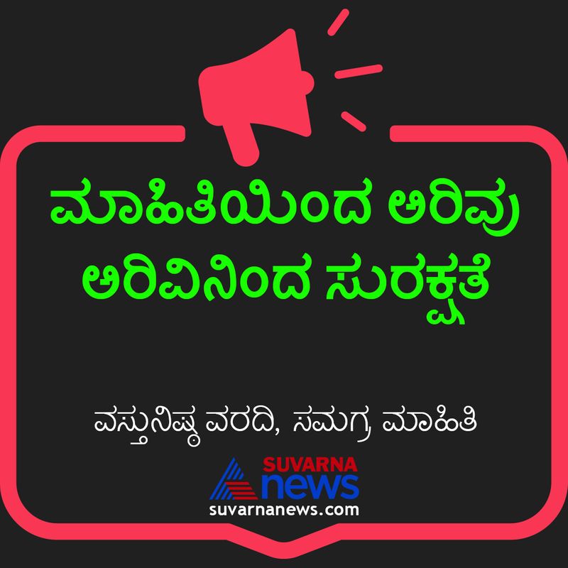 ಕರ್ನಾಟಕ, ಭಾರತ (India News) ಮತ್ತು ಜಗತ್ತಿನ ಕ್ಷಣಕ್ಷಣದ ಕನ್ನಡ ಸುದ್ದಿ (Kannada News) ಅಪ್ಡೇಟ್ಗಳಿಗಾಗಿ ಏಷ್ಯಾನೆಟ್ ಸುವರ್ಣ ನ್ಯೂಸ್ ಫಾಲೋ ಮಾಡಿ. ಬ್ರೇಕಿಂಗ್ ಸುದ್ದಿ (Latest Kannada News), ವಿಶೇಷ ವರದಿಗಳು ಮತ್ತು ನೇರ ಪ್ರಸಾರಗಳೊಂದಿಗೆ (kannada news live) ಸಂಪೂರ್ಣ ಮಾಹಿತಿ ಒಂದೇ ಕ್ಲಿಕ್ನಲ್ಲಿ ಲಭ್ಯ. ಏಷ್ಯಾನೆಟ್ ಸುವರ್ಣ ನ್ಯೂಸ್ ಅಧಿಕೃತ ಆ್ಯಪ್ ಡೌನ್ಲೋಡ್ ಮಾಡಿ ಹಾಗು ಎಲ್ಲಾ ಅಪ್ಡೇಟ್ ಗಳನ್ನು ಪಡೆಯಿರಿ