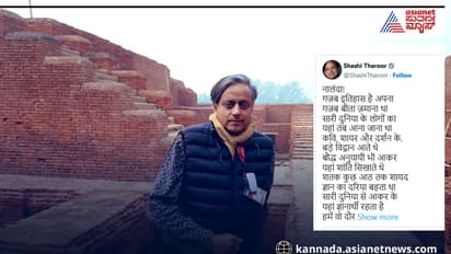 ನಳಂದ ವಿಶ್ವವಿದ್ಯಾಲಯಕ್ಕೆ ಭೇಟಿ ನೀಡಿದ ನಂತರ ಬುಧವಾರ (ಡಿಸೆಂಬರ್ 24) ಶಶಿ ತರೂರ್ ಅವರು ತಮ್ಮ 'X' ಖಾತೆಯಲ್ಲಿ ಕವಿತೆಯೊಂದನ್ನು ಹಂಚಿಕೊಂಡಿದ್ದಾರೆ. 'ನಳಂದ! ನಮ್ಮ ಇತಿಹಾಸ ಅತ್ಯಂತ ಅದ್ಭುತವಾದುದು. ಇಲ್ಲಿಗೆ ವಿಶ್ವದ ಮೂಲೆ ಮೂಲೆಯಿಂದ ಕವಿಗಳು, ಬರಹಗಾರರು ಮತ್ತು ತತ್ವಜ್ಞಾನಿಗಳು ಜ್ಞಾನ ಅರಸಿ ಬರುತ್ತಿದ್ದರು. ಬೌದ್ಧ ಅನುಯಾಯಿಗಳು ಇಲ್ಲಿ ಶಾಂತಿ ಮತ್ತು ಪ್ರೀತಿಯ ಪಾಠ ಕಲಿಸುತ್ತಿದ್ದರು' ಎಂದು ಅವರು ಬಣ್ಣಿಸಿದ್ದಾರೆ.