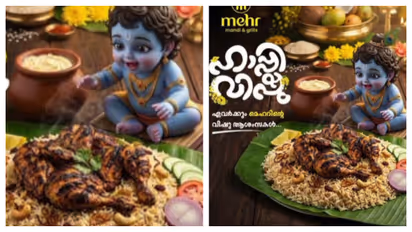 ಕೊಚ್ಚಿ (ಏ.17): ಕೇರಳದ ಅಲೆಪ್ಪಿ ಜಿಲ್ಲೆಯ ಚೆರ್ತಲಾದಲ್ಲಿ ವಿಷು ಹಬ್ಬದ ಶುಭಾಶಯ ಕೋರುವ ಪೋಸ್ಟರ್ನಲ್ಲಿ ಶ್ರೀಕೃಷ್ಣನ ಪಕ್ಕದಲ್ಲಿ ಚಿಕನ್ ಮಂದಿ (ಚಿಕನ್ ಮತ್ತು ರೈಸ್) ಖಾದ್ಯವನ್ನು ಚಿತ್ರೀಕರಿಸಿದ ಆರೋಪದ ಮೇಲೆ ರೆಸ್ಟೋರೆಂಟ್ ಮಾಲೀಕನನ್ನು ಪೊಲೀಸರು ಬಂಧಿಸಿದ್ದಾರೆ. ಮಲಯಾಳಿಗಳ ಹೊಸ ವರ್ಷವಾದ 'ವಿಷು' ಹಬ್ಬದ ಅಂಗವಾಗಿ ಚೆರ್ತಲಾದ ಮನೋರಮಾ ಜಂಕ್ಷನ್ ಬಳಿ ಇರುವ 'ಮೆಹರ್ ಮಂತಿ ಆ್ಯಂಡ್ ಗ್ರಿಲ್ಸ್' ರೆಸ್ಟೋರೆಂಟ್ನ ಹೆಸರಿನಲ್ಲಿ ಸೋಷಿಯಲ್ ಮೀಡಿಯಾದಲ್ಲಿ ಪೋಸ್ಟರ್ವೊಂದು ಹರಿದಾಡಿತ್ತು. ಆ ಪೋಸ್ಟರ್ನಲ್ಲಿ ಶ್ರೀಕೃಷ್ಣನ ಚಿತ್ರದ ಮುಂದೆ ಗ್ರಿಲ್ಡ್ ಚಿಕನ್ ಮತ್ತು ಮಂದಿ ರೈಸ್ ಇರುವ ತಟ್ಟೆಯನ್ನು ಇಡಲಾಗಿತ್ತು. ಈ ಚಿತ್ರವು ಹಿಂದೂ ಸಂಘಟನೆಗಳ ತೀವ್ರ ಆಕ್ರೋಶಕ್ಕೆ ಕಾರಣವಾಯಿತು. ಧಾರ್ಮಿಕ ಭಾವನೆಗಳಿಗೆ ಧಕ್ಕೆ ತರಲಾಗಿದೆ ಎಂದು ಆರೋಪಿಸಿ ವಕೀಲ ಎಂ.ವಿ. ಬಿಜು ಎಂಬುವವರು ದೂರು ದಾಖಲಿಸಿದ್ದರು.