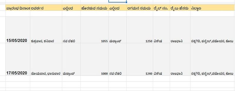 ವಲಸೆ ಕಾರ್ಮಿಕರಿಗೆ ನೆರವಾಗಲು ರೈಲು ಸೇವೆ ಆರಂಭಗೊಂಡಿದೆ. ಇಂದಿನಿಂದ(ಮೇ.11) ಆನ್ಲೈಟ್ ಟಿಕೆಟ್ ಬುಕಿಂಗ್ ಆರಂಭಗೊಂಡಿದೆ. ರೈಲು ಸೇವೆಯ ವೇಳಾಪಟ್ಟಿ ವಿವರ ಈ ಕೆಳಗೆ ನೀಡಲಾಗಿದೆ.