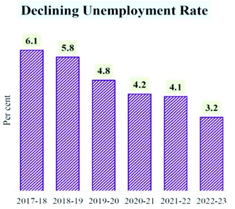 1991-96ರ ಕಾಂಗ್ರೆಸ್ ಆಡಳಿತದ ಅವಧಿಯಲ್ಲಿ ಭಾರತ ಆರ್ಥಿಕ ಬಿಕ್ಕಟ್ಟನ್ನು ಎದುರಿಸಿತು. ವ್ಯತಿರಿಕ್ತವಾಗಿ, 1998-2004ರ ಬಿಜೆಪಿ ಆಡಳಿತವು ಪೋಖ್ರಾನ್ ಪರಮಾಣು ಬಾಂಬ್ ಪರೀಕ್ಷೆಗೆ ಸಾಕ್ಷಿಯಾಯಿತು, ಇದು ಜಾಗತಿಕ ಆರ್ಥಿಕ ಮತ್ತು ವ್ಯಾಪಾರ ನಿರ್ಬಂಧಗಳಿಗೆ ಕಾರಣವಾಯಿತು ಮತ್ತು ಗಮನಾರ್ಹ ಆರ್ಥಿಕ ಸವಾಲುಗಳನ್ನು ಒಡ್ಡಿತು. ಅಂತೆಯೇ, 2004-2014ರ ಕಾಂಗ್ರೆಸ್ ಯುಗವು 2008 ರ ಜಾಗತಿಕ ಆರ್ಥಿಕ ಬಿಕ್ಕಟ್ಟಿನೊಂದಿಗೆ ಎದುರಿಸಿದರೆ, 2014-24ರ ಅವಧಿಯಲ್ಲಿ ಕೋವಿಡ್-19 ಸಾಂಕ್ರಾಮಿಕ ಮತ್ತು ಉಕ್ರೇನ್ ಯುದ್ಧದಂತಹ ಬಿಕ್ಕಟ್ಟುಗಳನ್ನು ಎದುರಿಸಿದರೂ, ಮೋದಿ ಸರ್ಕಾರವು ಹಣದುಬ್ಬರವನ್ನು ಪರಿಣಾಮಕಾರಿಯಾಗಿ ನಿರ್ವಹಿಸಿತು, ಬೆಳವಣಿಗೆಯನ್ನು ಹೆಚ್ಚಿಸಿತು ಮತ್ತು ಗಣನೀಯ ಪ್ರಗತಿಯನ್ನು ಸಾಧಿಸಿತು. ಉದ್ಯೋಗ ಸೃಷ್ಟಿಯಲ್ಲಿ. 2017-18 ರಲ್ಲಿ 6.1% ರಷ್ಟಿದ್ದ ನಿರುದ್ಯೋಗ ದರಗಳು ಮೋದಿ ಸರ್ಕಾರದ ಅಧಿಕಾರಾವಧಿಯಲ್ಲಿ 2022-23 ರ ವೇಳೆಗೆ 3.2% ಕ್ಕೆ ಸುಮಾರು ಅರ್ಧದಷ್ಟು ಕಡಿಮೆಯಾಗಿದೆ.