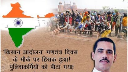 ನವದೆಹಲಿ(ಜ.27): ರೈತರ ಟ್ರಾಕ್ಟರ್ ರ್ಯಾಲಿ ಹಿಂಸಾ ರೂಪ ಪಡೆದು ಭಾರಿ ನಷ್ಟ ಸಂಭವಿಸಿದೆ. ಕೆಂಪು ಕೋಟೆ ಮೇಲೆ ದಾಳಿ, ರಾಷ್ಟ್ರಧ್ವಜಕ್ಕೆ ಅವಮಾನ, 300ಕ್ಕೂ ಹೆಚ್ಚು ಪೊಲೀಸರಿಗೆ ಗಾಯ, ಸಾರ್ವಜನಿಕ ವಾಹನ ಜಖಂ ಸೇರಿದಂತೆ ರೈತರ ಹೆಸರಿನಲ್ಲಿ ನಡೆದ ಗಲಭೆ ದೇಶದ ಮಾನ ಹರಾಜು ಹಾಕಿದೆ. ರಾಬರ್ಟ್ ವಾದ್ರ ಇದೀಗ ಹೊಸ ವಿವಾದ ಸೃಷ್ಟಿಸಿದ್ದಾರೆ.