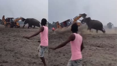 ಓಡಿಬಂದು ತಲೆಯಿಂದ ಜೆಸಿಬಿಗೆ ಆನೆ ಡಿಕ್ಕಿ ಹೊಡೆಯಿತು. ಆದರೆ, ಜೆಸಿಬಿಗೆ ಅಳವಡಿಸಲಾಗಿದ್ದ ಕಬ್ಬಿಣದ ಬಕೆಟ್ ಆನೆಯ ಹಣೆಗೆ ತಾಗಿ ನೋವುಂಟುಮಾಡಿತು ಎಂದು ಆನೆಯ ತಲೆ ಅಲ್ಲಾಡಿಸುವುದರಿಂದ ತಿಳಿಯುತ್ತದೆ. ಅನಿರೀಕ್ಷಿತ ದಾಳಿಯಿಂದ ಭಯಭೀತರಾದ ಆನೆ ಅಲ್ಲಿಂದ ಹಿಂದೆ ಸರಿದು ಓಡಲು ಪ್ರಯತ್ನಿಸಿತು. ಹಿಂದೆ ಓಡುವ ಆನೆಯ ಹಿಂದೆ ಜನರು ಕೂಗುತ್ತಾ ಓಡುವುದನ್ನು ವೀಡಿಯೊದಲ್ಲಿ ಕಾಣಬಹುದು.