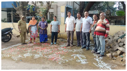 ಬಳ್ಳಾರಿಯ ಮಯೂರ ಹೋಟೆಲ್ ಬಳಿ ಸಂಗ್ರಹವಾಗಿದ್ದ ತ್ಯಾಜ್ಯವನ್ನು ತೆರವುಗೊಳಿಸಿದ ಪಾಲಿಕೆ ಸಿಬ್ಬಂದಿ ಸ್ಥಳ ಶುಚಿಗೊಳಿಸಿ ರಂಗೋಲಿ ಹಾಕಿದರಲ್ಲದೆ, ಸುತ್ತಮುತ್ತಲ ಜನರಿಗೆ ಇಲ್ಲಿ ಕಸ ಹಾಕರಬಾರದು ಎಂದು ಮನವರಿಕೆ ಮಾಡಿಕೊಟ್ಟರು.