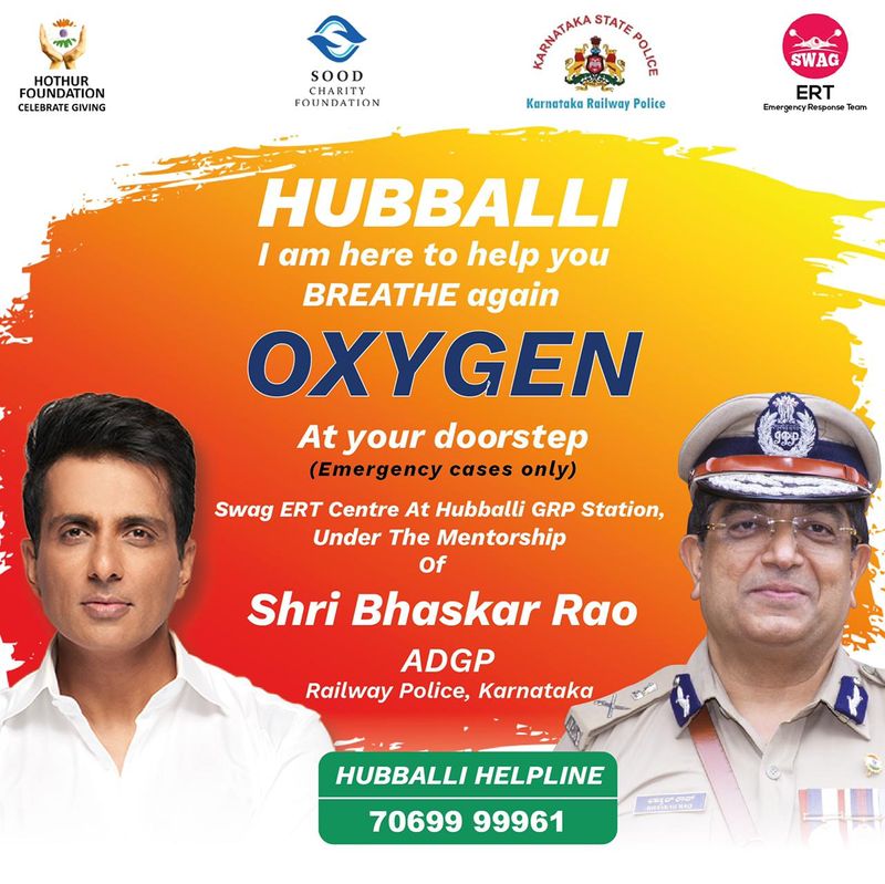 7069999961 ಗೆ ಕರೆ ಮಾಡಿ ಆಕ್ಸಿಜನ್ ಸಿಲಿಂಡರ್ ಪಡೆದುಕೊಳ್ಳಬಹುದು. ಹುಬ್ಬಳ್ಳಿ ಧಾರವಾಡ ಸೇರಿ ಸುತ್ತಲಿನ 120 ಕಿಮೀ ಅಂತರದಲ್ಲಿ ಈ ಸಂಪೂರ್ಣ ಉಚಿತ ಸೇವೆ ಲಭ್ಯವಿದೆ.
