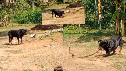ಕಾಳಗದ ಅಂತ್ಯದಲ್ಲಿ ರಾಟ್ವೀಲರ್ ನಾಯಿ ತನ್ನ ಬಲಿಷ್ಠ ದವಡೆಯಿಂದ ನಾಗರಹಾವನ್ನು ಸಂಪೂರ್ಣವಾಗಿ ಕಚ್ಚಿ ಕೊಂದಿದೆ. ಆದರೆ ನಾಗರಹಾವಿನ ವಿಷಕಾರಿ ಕಡಿತದಿಂದ ನಾಯಿ ಕೂಡ ತೀವ್ರವಾಗಿ ಗಾಯಗೊಂಡಿತ್ತು. ಹಾವನ್ನು ಸಾಯಿಸಿದ ಬಳಿಕ ನಾಯಿ ತನ್ನ ಬೋನಿಗೆ ತೆರಳಿ ಮಲಗಿಕೊಂಡಿದ್ದು, ಸ್ವಲ್ಪ ಸಮಯದ ಬಳಿಕ ಅಲ್ಲಿಯೇ ಉಸಿರು ಚೆಲ್ಲಿದೆ. ಹಾವಿನ ವಿಷ ನಾಯಿಯ ದೇಹದ ಮೇಲೆ ಗಂಭೀರ ಪರಿಣಾಮ ಬೀರಿದ್ದು, ಚಿಕಿತ್ಸೆ ದೊರಕುವ ಮುನ್ನವೇ ನಾಯಿ ಮೃತಪಟ್ಟಿದೆ.