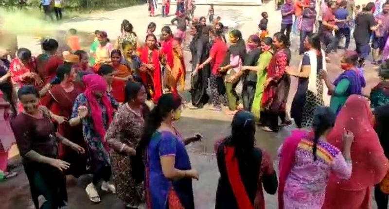 ಬಾಯಿ ಬಾಯಿ ಬಡಿದುಕೊಳ್ಳುತ್ತಾ ಬಣ್ಣದಾಟದಲ್ಲಿ ಮಿಂದೆದ್ದ ಹುಡುಗಿಯರು: ಈ ಬಾರಿ ಹುಡುಗರ ಜೊತೆಗೆ ಹುಡುಗಿಯರು ಸಹ ಹೆಚ್ಚಾಗಿ ಹೋಳಿ ಬಣ್ಣದಾಟದಲ್ಲಿ ಮುಳುಗೇಳಿದ್ದು ಕಂಡು ಬಂತು. ಪರಸ್ಪರ ಮುಖಕ್ಕೆ ಬಣ್ಣ ರಾಚುವ ಮೂಲಕ ಯುವಕರು , ಯುವತಿಯರು ವಿವಿಧ ಹಾಡುಗಳಿಗೆ ಸಖತ್ ಸ್ಟೆಪ್ ಹಾಕಿ ಕುಣಿದು ಕುಪ್ಪಳಿಸಿದರು. ಇವುಗಳ ಮಧ್ಯೆ ಯುವತಿಯರು ಬಾಯಿ ಬಾಯಿ ಬಡಿದುಕೊಳ್ಳುತ್ತಾ ನಗರವೆಲ್ಲಾ ಸಂಚರಿಸುತ್ತಿದ್ದ ದೃಶ್ಯ ಸವೆ೯ ಸಾಮಾನ್ಯವಾಗಿತ್ತು.