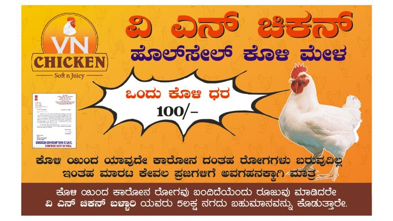 ಬಳ್ಳಾರಿ(ಮಾ.12): ಕೋಳಿಗಳಿಂದ ಕೊರೋನಾ ವೈರಸ್ ಹರಡಲಿದೆ ಎಂಬ ವದಂತಿಗೆ ಕುಕ್ಕಟೋದ್ಯಮ ತತ್ತರಿಸಿ ಹೋಗಿದೆ. ಕೋಳಿ ಮಾಂಸ ಪ್ರಿಯರಲ್ಲಿ ವಿಶ್ವಾಸ ಮೂಡಿಸಲು ಹಾಗೂ ಇದರಿಂದ ವೈರಸ್ ಹರಡುವುದಿಲ್ಲ ಎಂಬುದನ್ನು ತಿಳಿ ಹೇಳುವ ಉದ್ದೇಶದಿಂದ ಕುಕ್ಕುಟೋದ್ಯಮಿಗಳು ಸಾರ್ವಜನಿಕವಾಗಿಯೇ ಸವಾಲು ಹಾಕಿದ್ದಾರೆ.